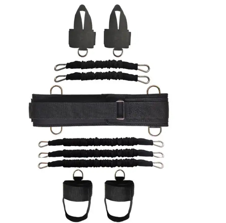 Using adjustable latex resistance tubes connected to the waist belt, wrist straps, and ankle straps, this system adds progressive resistance to punches, kicks, and movement patterns, forcing the body to work as a single kinetic chain.