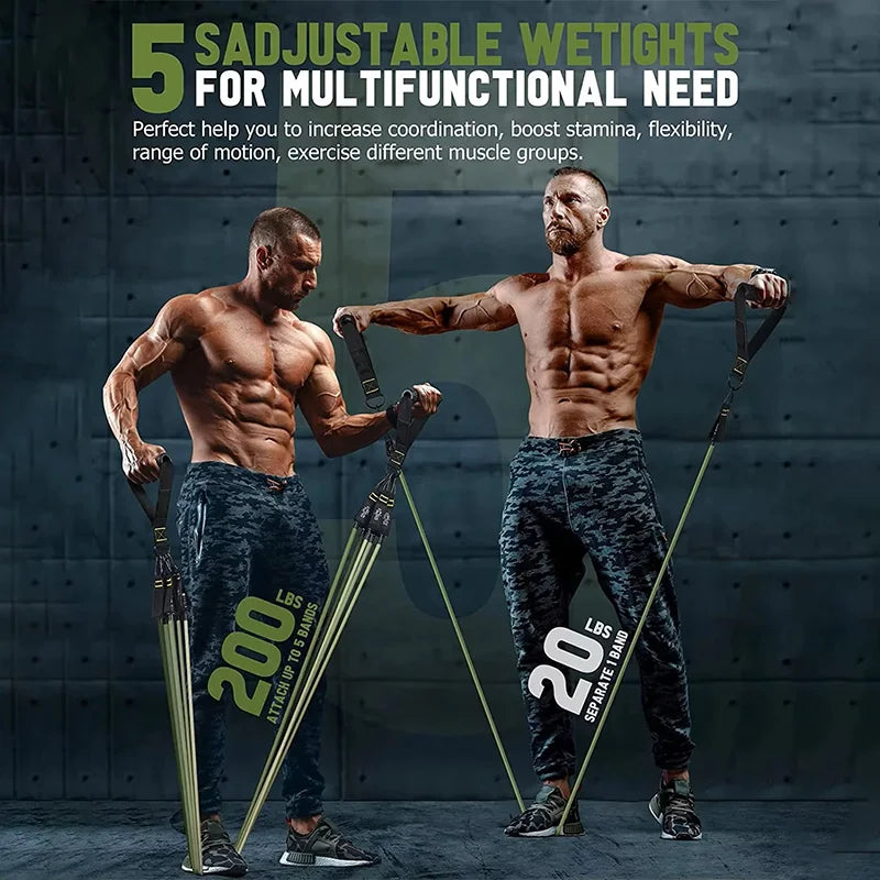 Due to version updates, the all-black 250 lbs set has been replaced with six resistance bands: