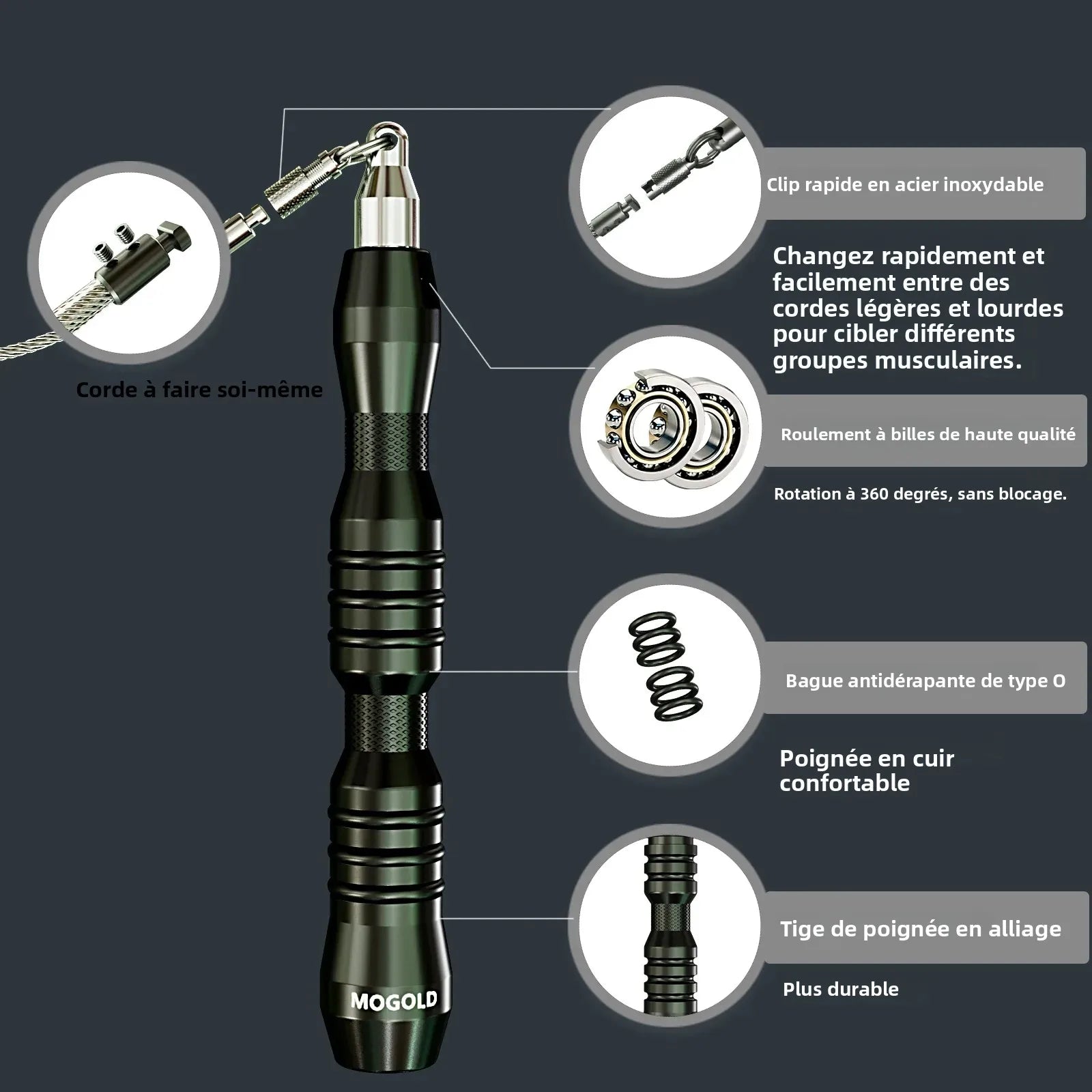 The aluminium alloy handles provide a solid and comfortable grip, even during long sessions. Built-in high-speed bearings ensure rapid and fluid rotation, making this rope perfect as a speed jump rope for explosive footwork and rhythm training.